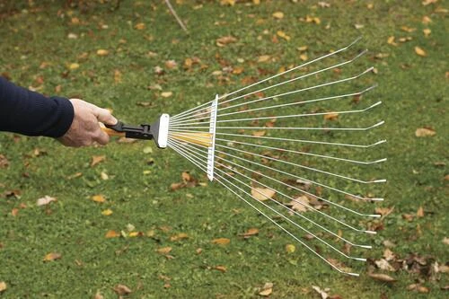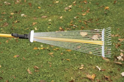 This adjustable width steel rake easily changes width up to 22″. Very versatile, it makes it easy to rake in narrow spaces. It fully closes for easy storage and is ideal for drive ways, yards, pathways and gardens. It is made of aluminum that is lightweight and durable.