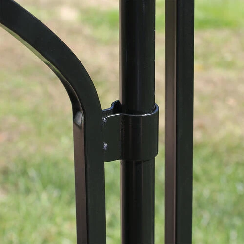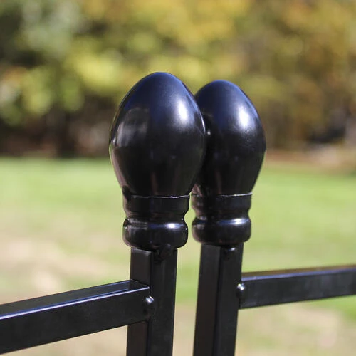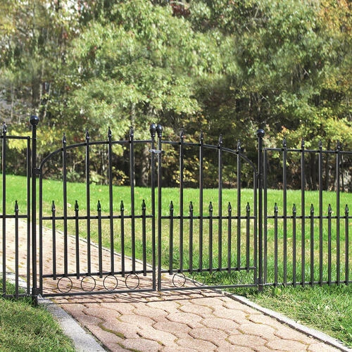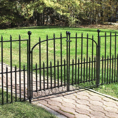 The Teton fence is a versatile fencing solution that will add style and elegance to your garden or walkway. The gate features a powder-coating for added durability and to help prevent corrosion so your fence will last for years to come. The fencing system is quick, easy, and painless to install. No digging or concrete is required for installation, simply drive stake post unit into ground using a hammer or mallet. Gate and panels join easily together by passing the posts through the eyelets. Please refer to the Teton fence line for matching panels, posts, and required accessories for installation.