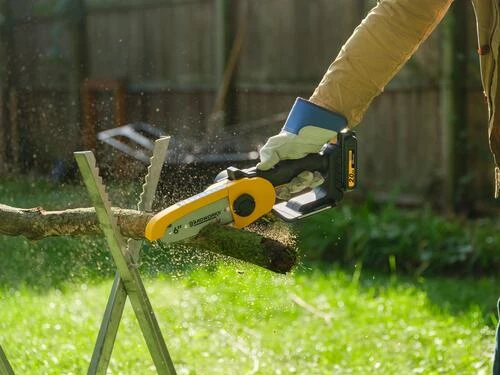 The Yardworks™ 20-Volt Hatchet Chainsaw is the perfect tool for trimming and pruning branches around the yard. This tool has been designed to provide the utility of a chainsaw in an easy-to-use and lightweight form. It comes preassembled and requires no gas to operate. It includes a 20-volt 2.0Ah battery and 1.5A charger, compatible with all other Yardworks™ 20-volt tools. The Yardworks™ family stands by the quality and longevity of its tools and protects this tool with a two-year limited warranty.