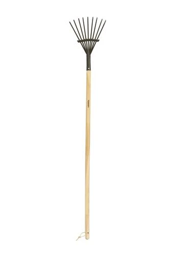 This shrub rake metal head is great for reaching into those little nooks and crannies with the metal head. It has nine durable tines and has a long lasting wood handle.